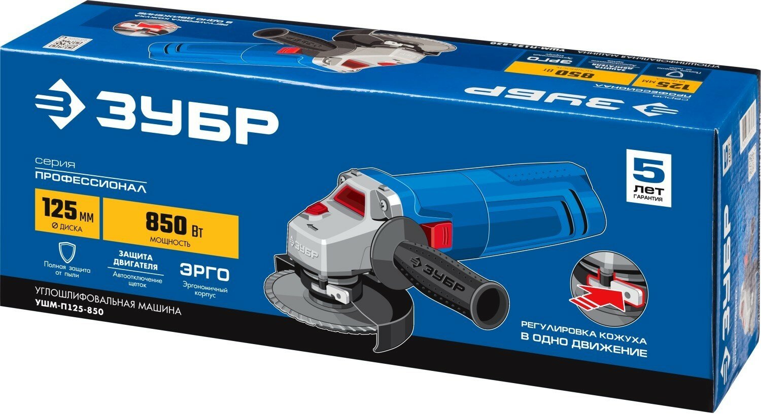 УШМ ЗУБР Профессионал 125 мм 850 Вт УШМ-П125-850
