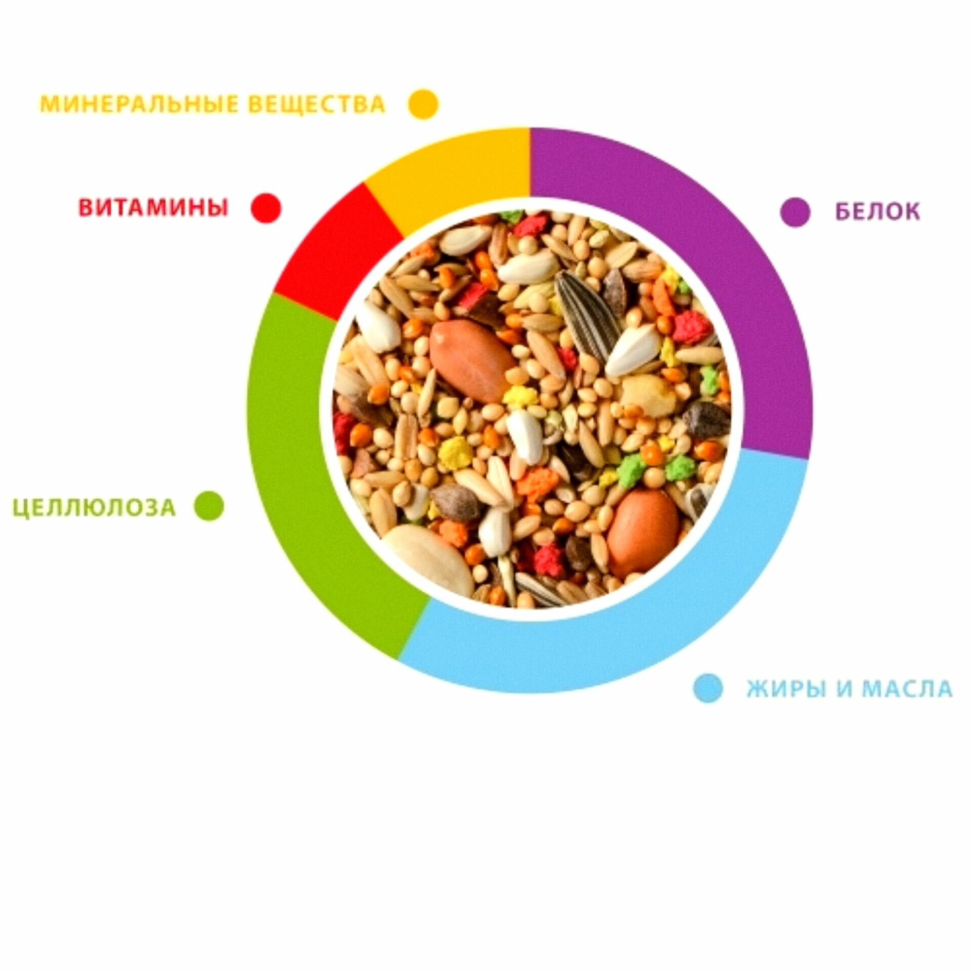 | Плюсы: | Разнообразие зерна и семечек в корме, практически ничего не надо добавлять. |