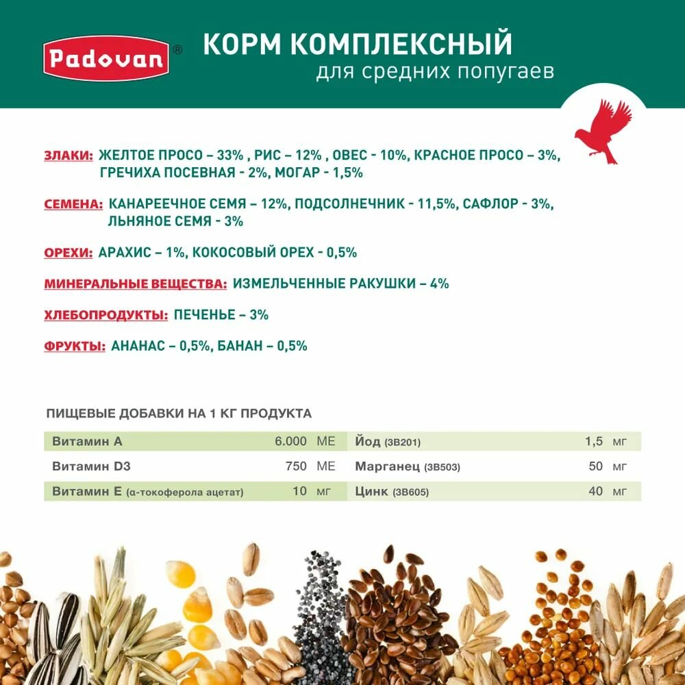 Купить PADOVAN Корм GRANDMIX PARROCCHETTI комплексный для средних попугаев 850г