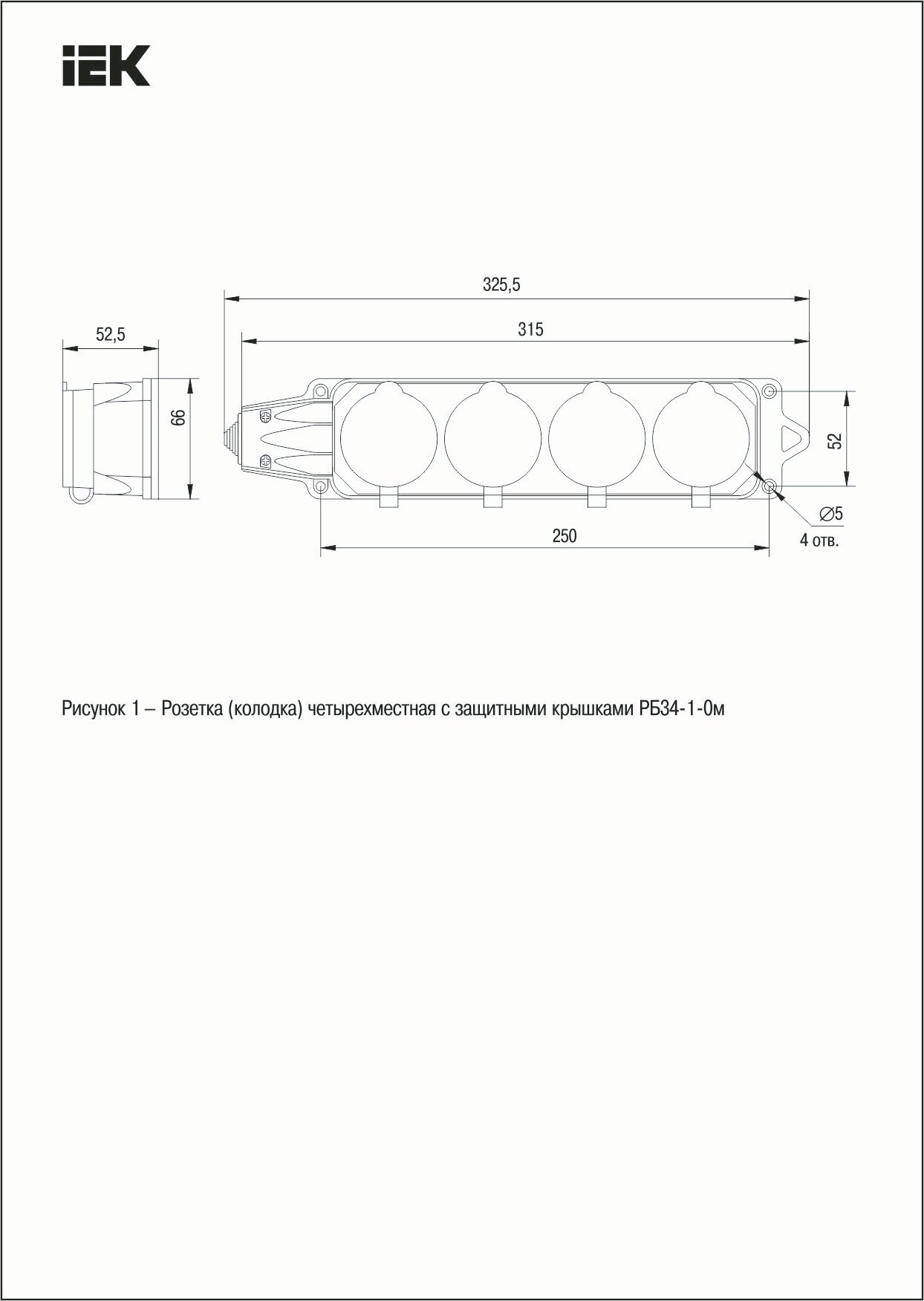 Розетка (колодка) 4-местная РБ34-1-0м с защитными крышками IP44 омега IEK