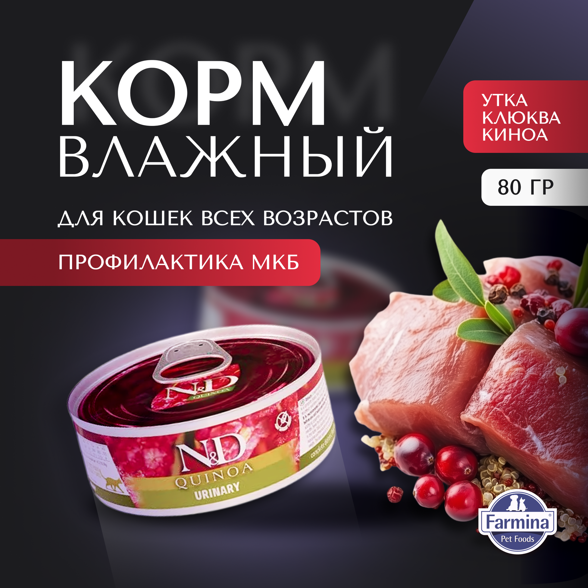 Корм Farmina N&D QUINOA Urinary (консерв.) для кошек, профилактика МКБ, 80 г x 12 шт