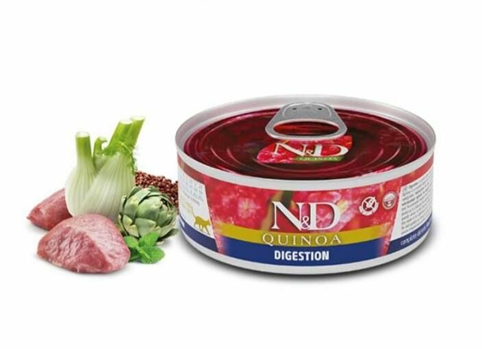 FARMINA CAT N&D QUINOA DIGESTION беззерновые для взрослых кошек с чувствительным пищеварением с ягненком и киноа (80 гр х 12 шт)