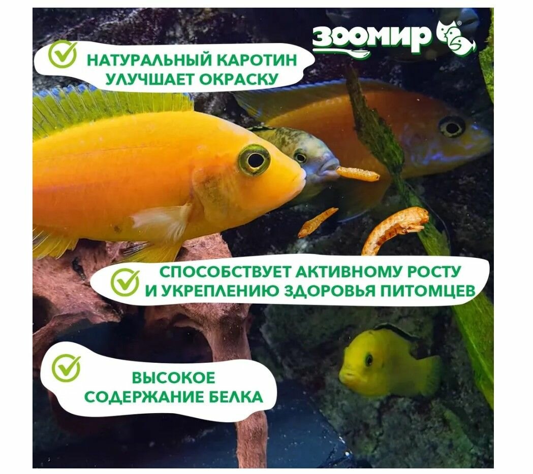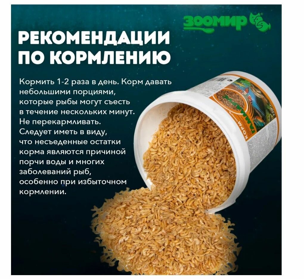 Корм для рыб Зоомир Натуральный сухой корм для крупных и средних аквариумных рыб, сушеные пресноводные рачки для усиления природного окраса 10гр, п/э пакет, 15 гр (19 штук)
