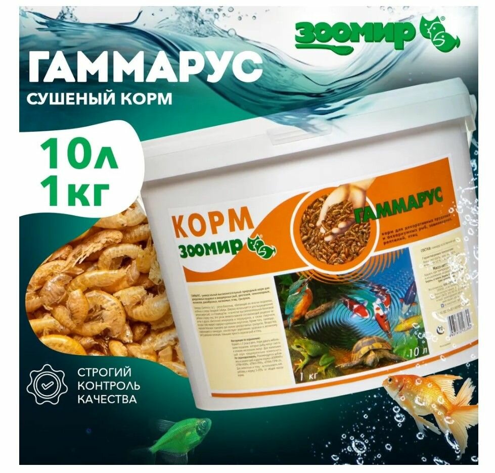 Сухой корм для рыб, рептилий, ракообразных Зоомир Гаммарус для декоративных прудовых и аквариумных рыб, 10 л, 1 кг
