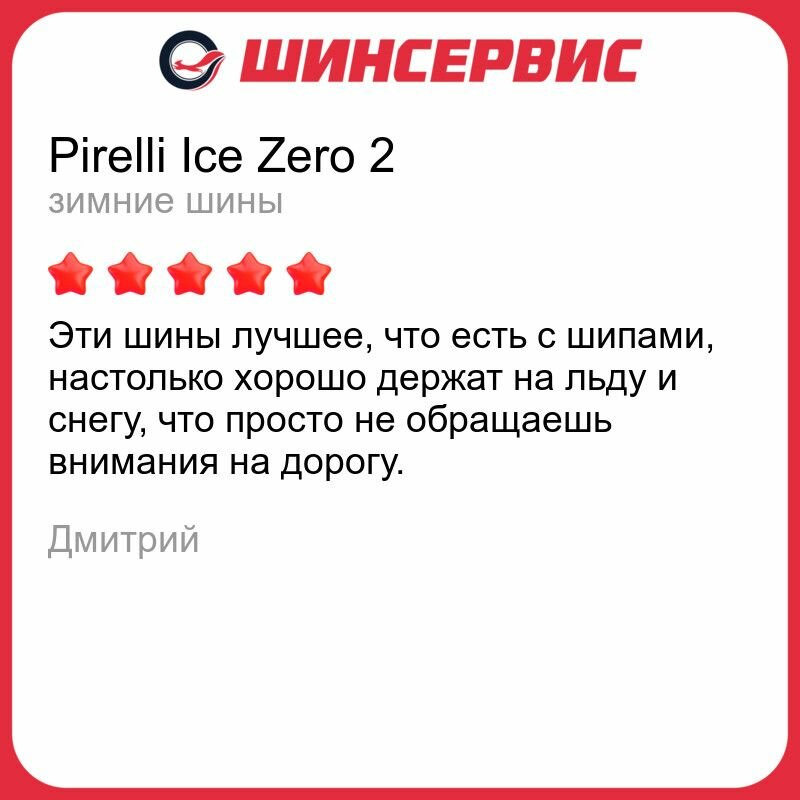 UPD. К великому сожалению, вынужден изменить свой отзыв из снизить оценку до 1 балла из 5.Причина в том, что по итогам всего ь одного сезона зимней эксплуатации на передних колесах вылетела почти половина шипов. На переднем левом колесе не досчитался 54 шипов. На переднем правом - то же самое. Не считал даже. На задних колесах шипы на месте. В чем причина такого безобразия? Стиль вождения у меня спокойный. Со светофоров резко не уезжаю. Берегу коробку и двигатель. На прежней машине у меня стояли шины Gislaved Nord Frost 100 и после шести (!) лет эксплуатации на каждой шине вылетело 1-3 шипа. За год я не стал другим человеком, и стиль вождения у меня прежний. Один сезон и минус 40% шипов, а шины стоят 43000 рублей, между прочим. Ошиповку в подвале делали что-ли? Где заявленное качество бренда Pirelli? Был бы рад услышать реакцию представителей компании. |