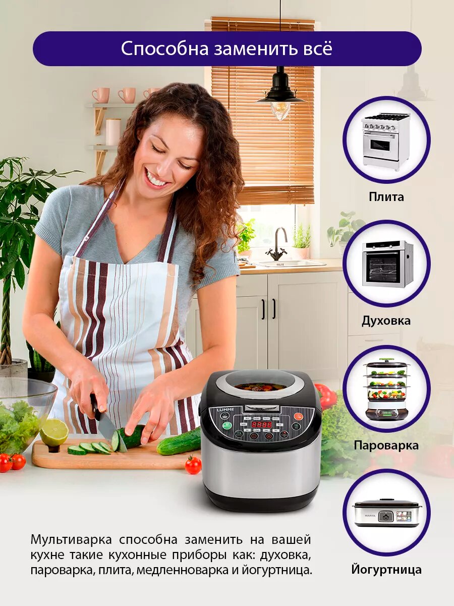 | Отзыв: | Это моя верная помощница на все случаи жизни. Присутствуют главные и необходимые программы, имеет стильный дизайн и многофункциональность. Простое интуитивно понятное меню, чаша большого объема и легкость в навигации. Качественный товар за нормальную цену, разницы между моей LUMME и той что у сестры что купила втридорога не увидела. Однозначно рекомендую |