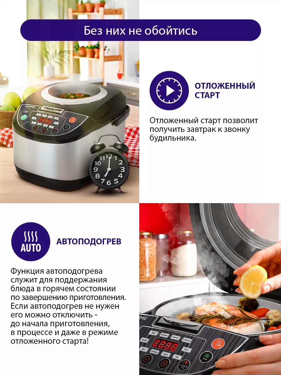 | Плюсы: | Быстрое приготовление различных блюд, невысокая цена, достаточно много программ, функция отложенный старт |