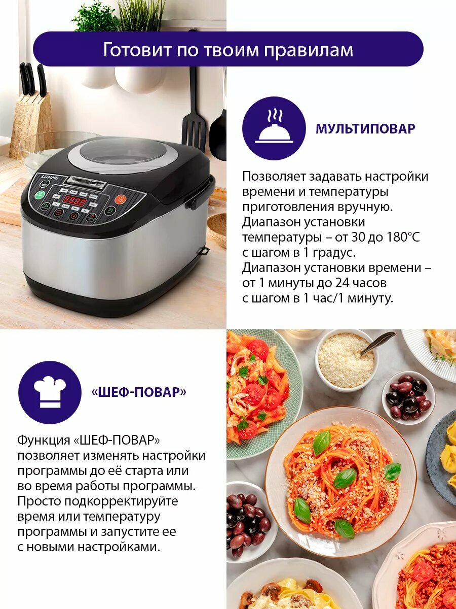 Мультиварка 5 литров, антипригарное покрытие, Шефповар интересное: