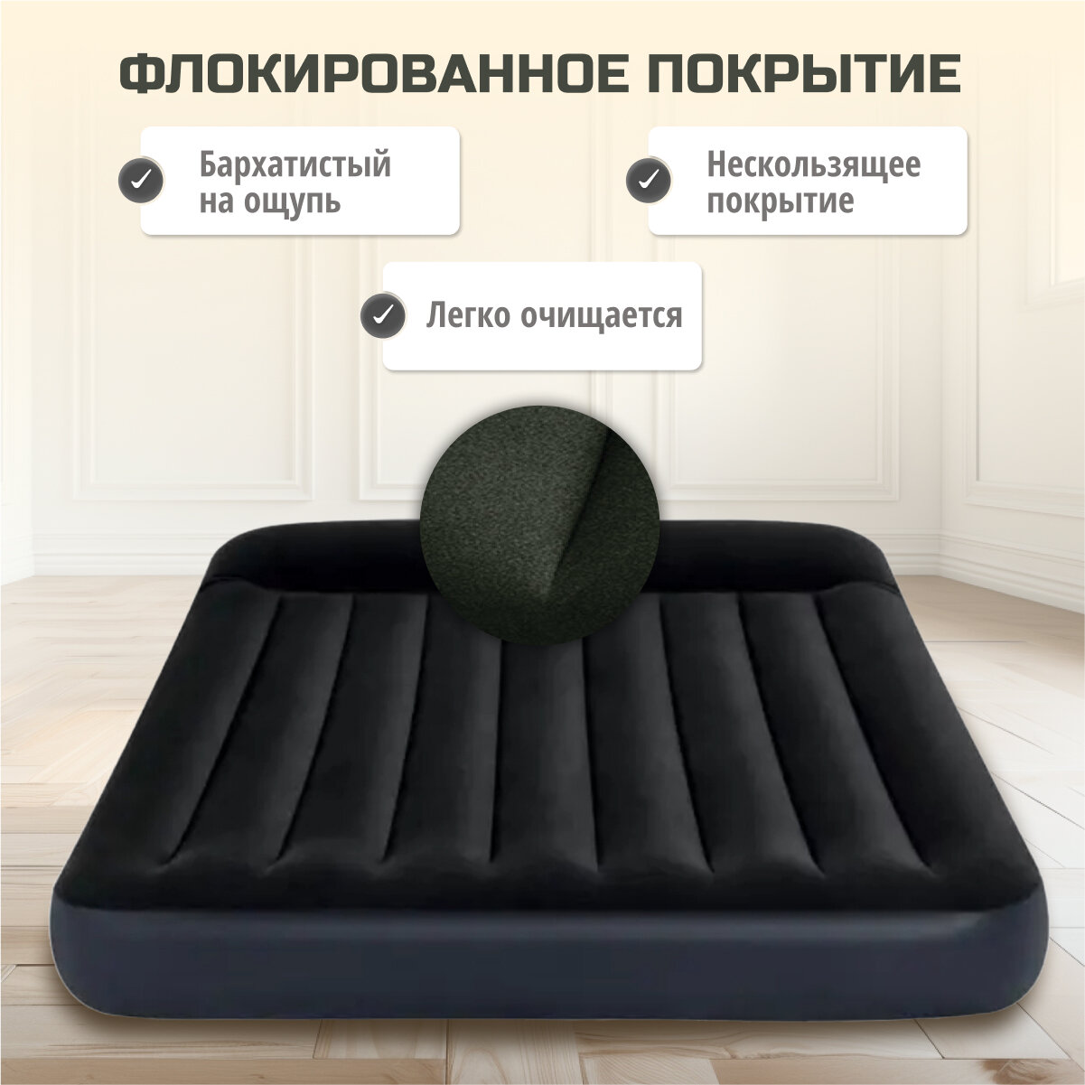 Матрас надувной Intex 191х99х25см флокированный 136кг 64146ND