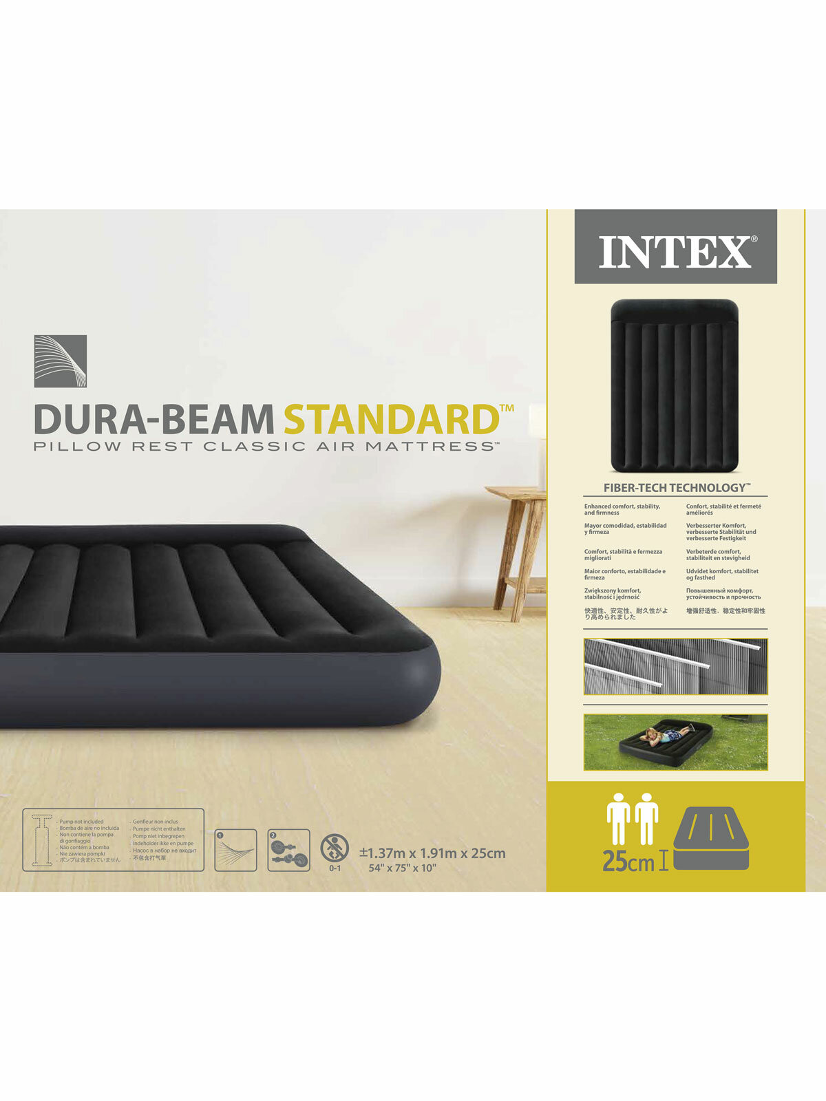 Матрас флокированный INTEX FULL DURA-BEAM PILLOW REST CLASSIC AIRBED, 191х137х25 см (64142)