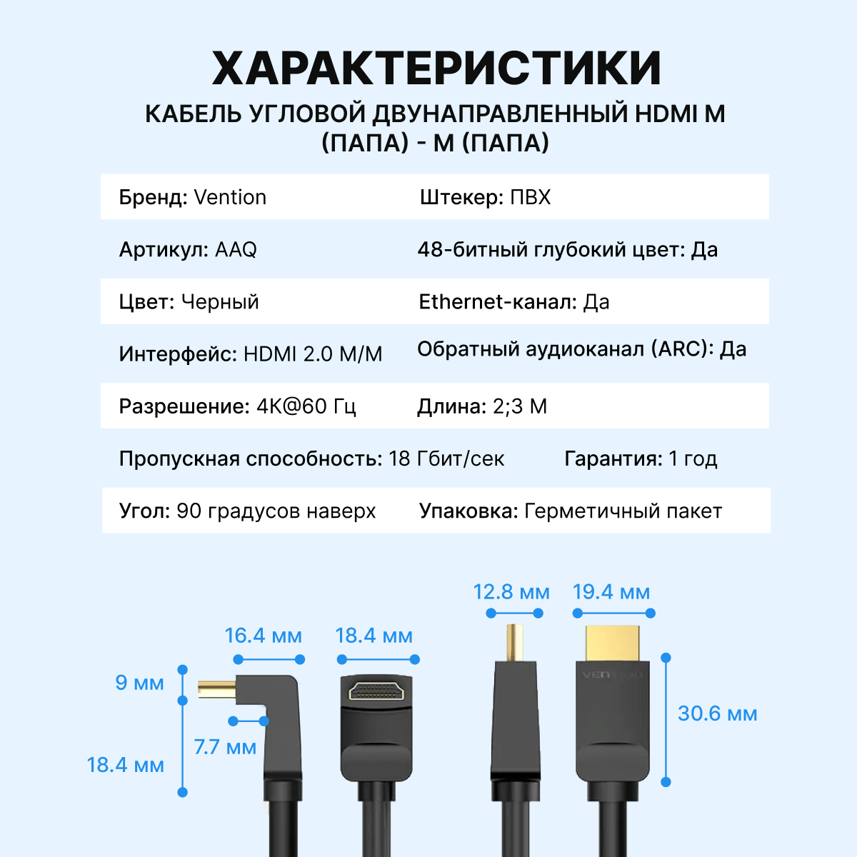 СохранитьКабель Vention HDMI High speed v2.0 with Ethernet 19M/19M угол 270 - 2м интересное: