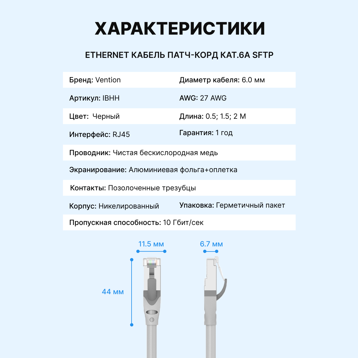 Патч корд 0.5 метра прямой SFTP cat.6A RJ45 Vention интернет кабель Ethernet сетевой, арт. IBHHD