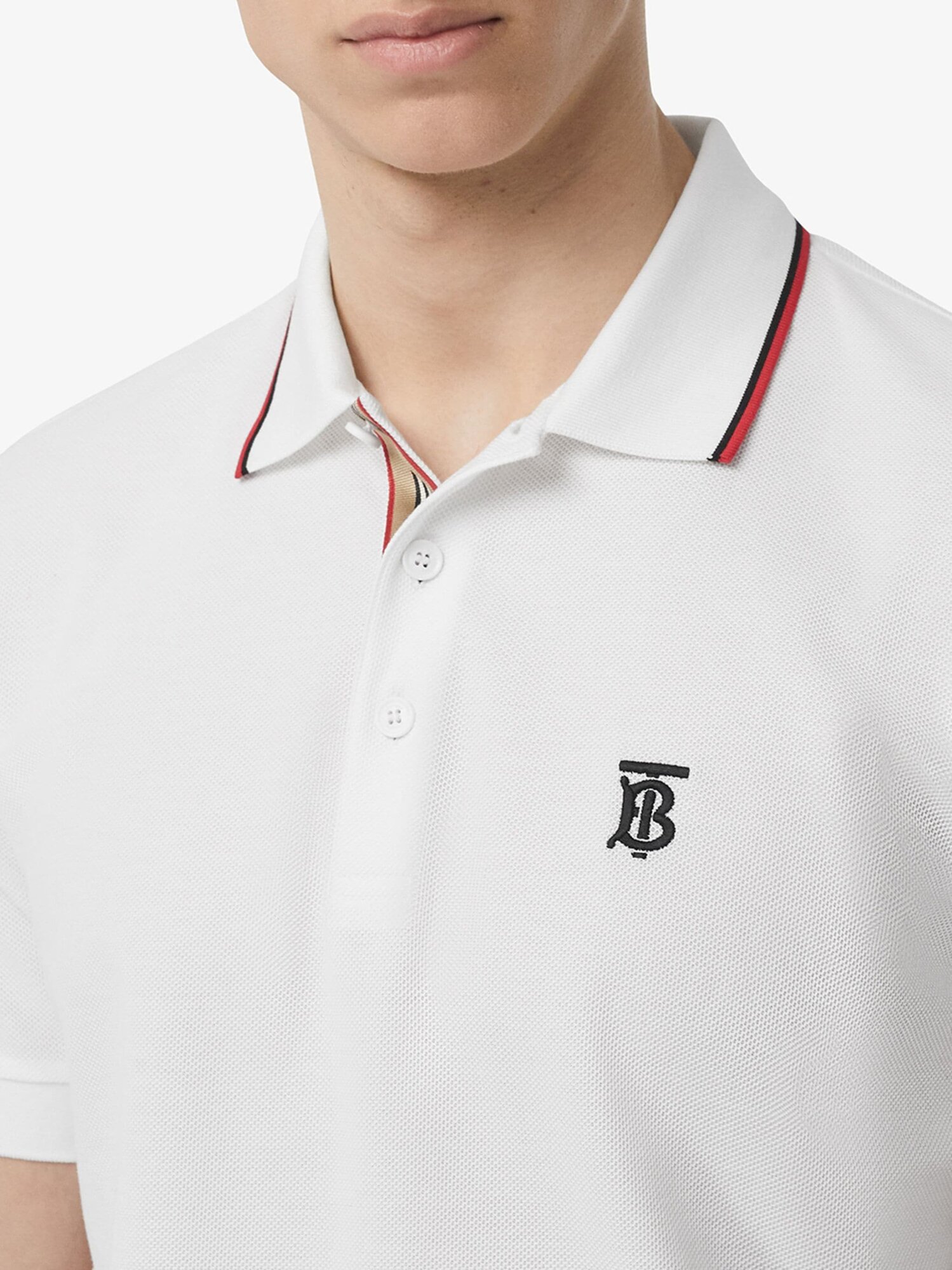 Burberry - Рубашка поло из хлопкового пике с планкой Icon Stripe - Mужской - XS - Серебристый