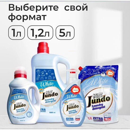 Jundo Концентрированный гель для стирки белого белья 1,2 л на 78 стирок в мягкой упаковке