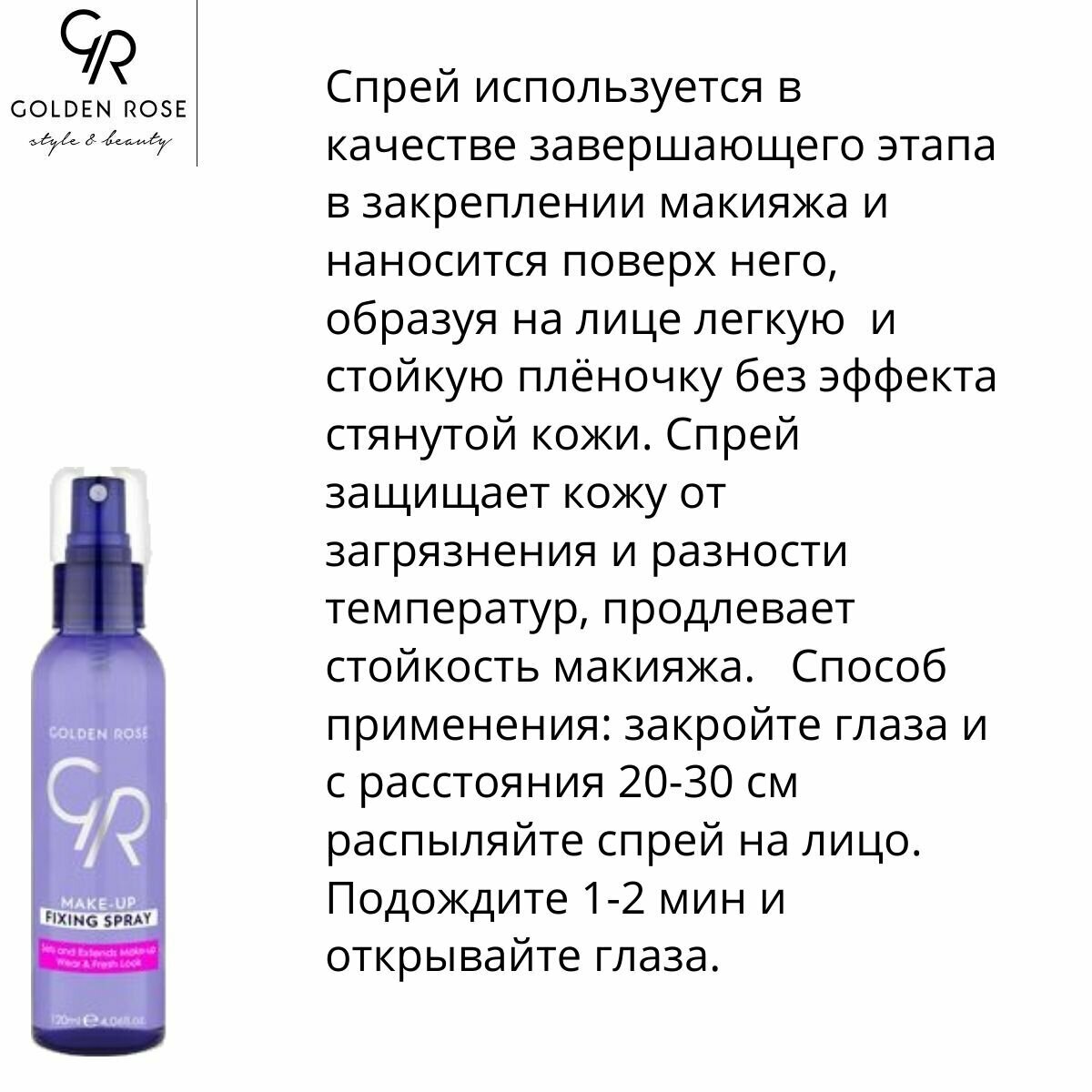 Спрей для лица Golden Rose, MAKE-UP FIXING SPRAY 120мл