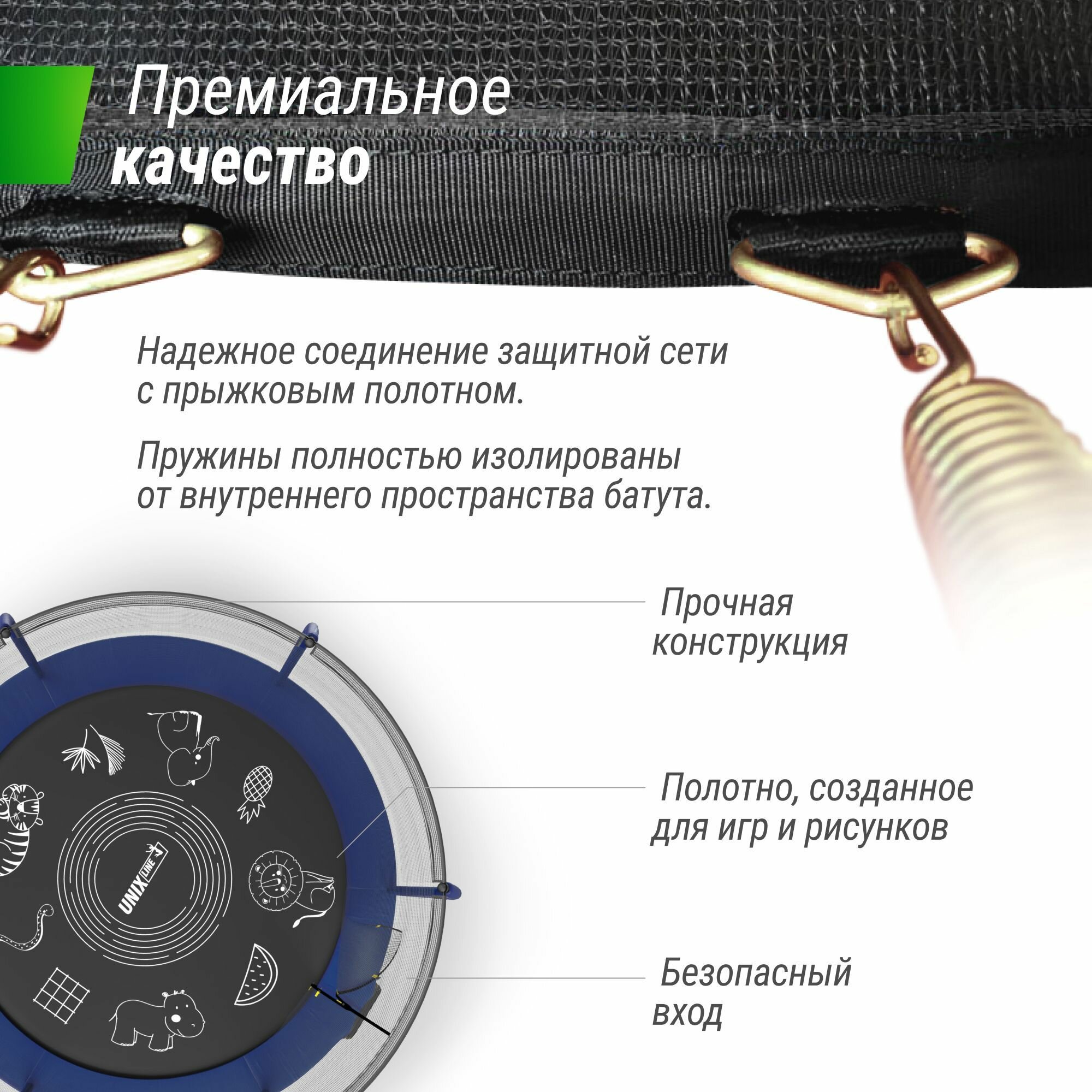 Батут UNIX Line SUPREME GAME 10 ft (green) новая комплектация. Мелки для рисования на батуте в комплекте.