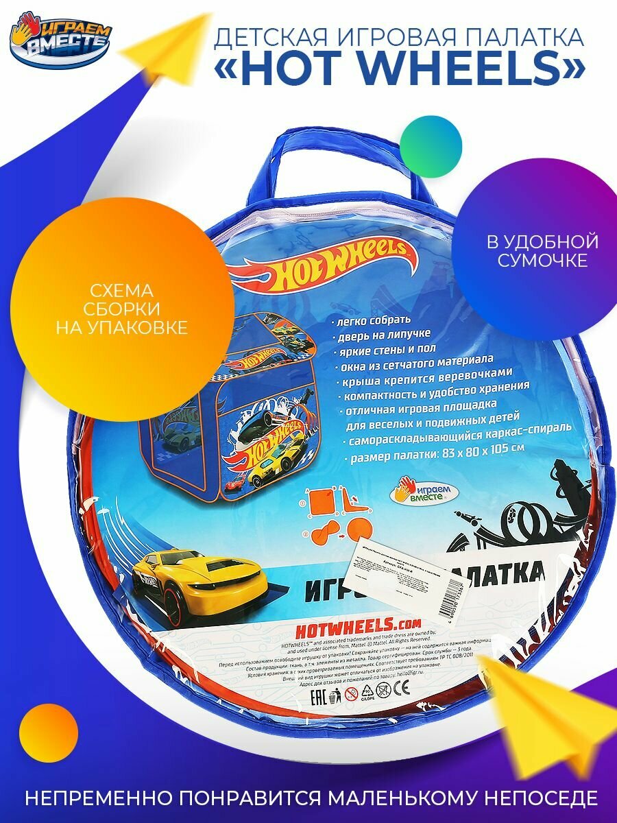 Играем вместе - Палатки "Играем вместе" Детская палатка Hot Wheels, 83 х 80 х 105 см GFA-HW-R