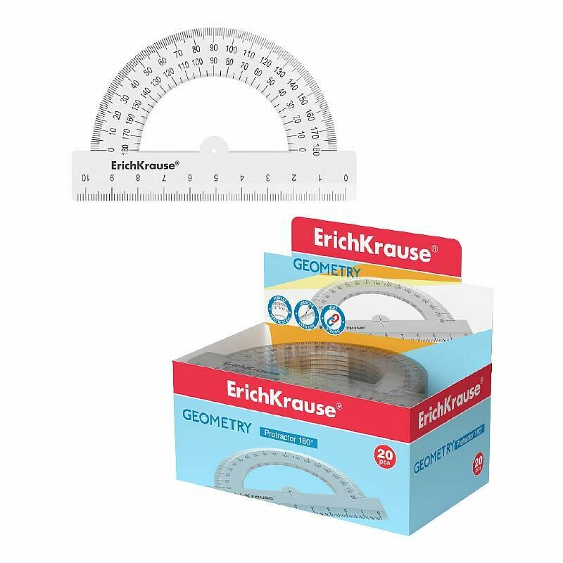 Транспортир пластиковый ErichKrause Clear, прозрачный, 180°, 10см интересное: