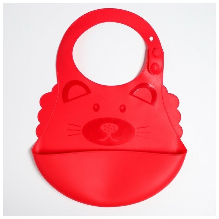 Нагрудник силиконовый с карманом, "Котик", цвет красный 4477646