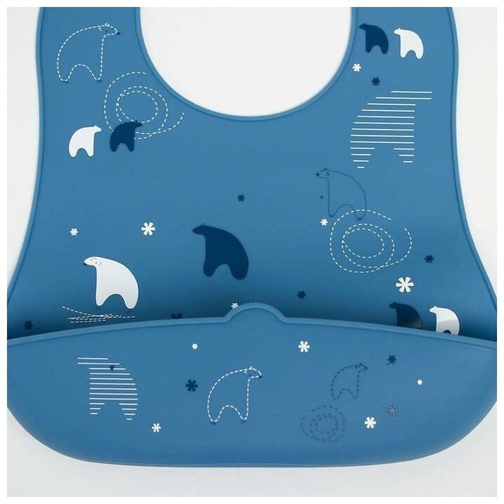 Купить Нагрудник для кормления "Северный мишка" силиконовый с карманом, цвет синий