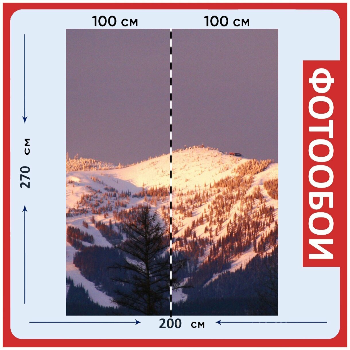 Купить Фотообои "Гора, заход солнца, лыжный курорт" 200x270 см. флизелиновыена стену