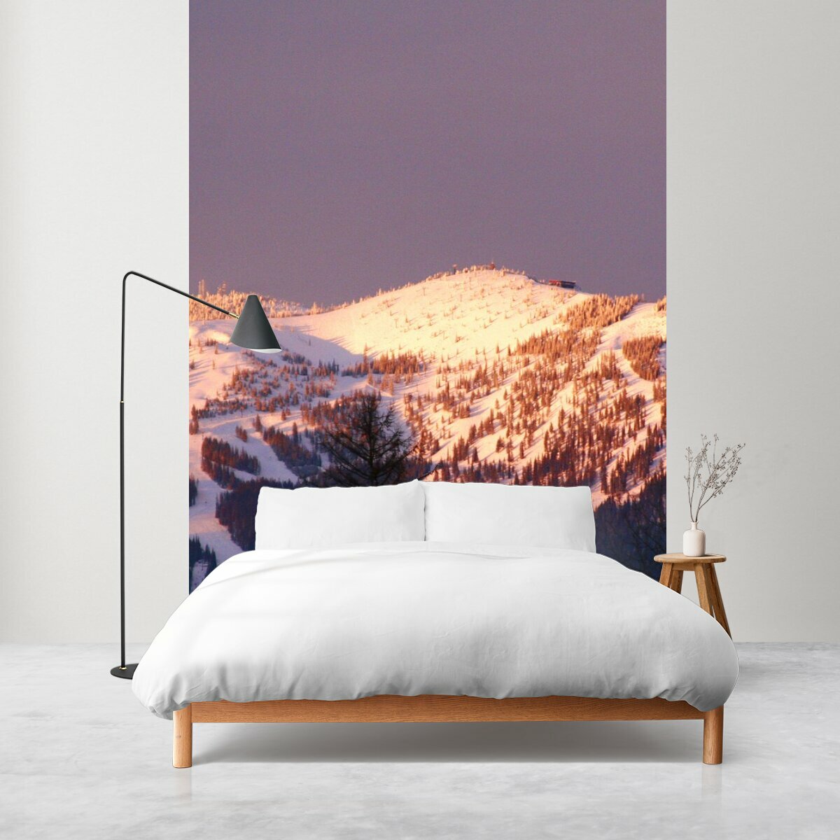 Фотообои "Гора, заход солнца, лыжный курорт" 200x270 см. флизелиновыена стену интересное: