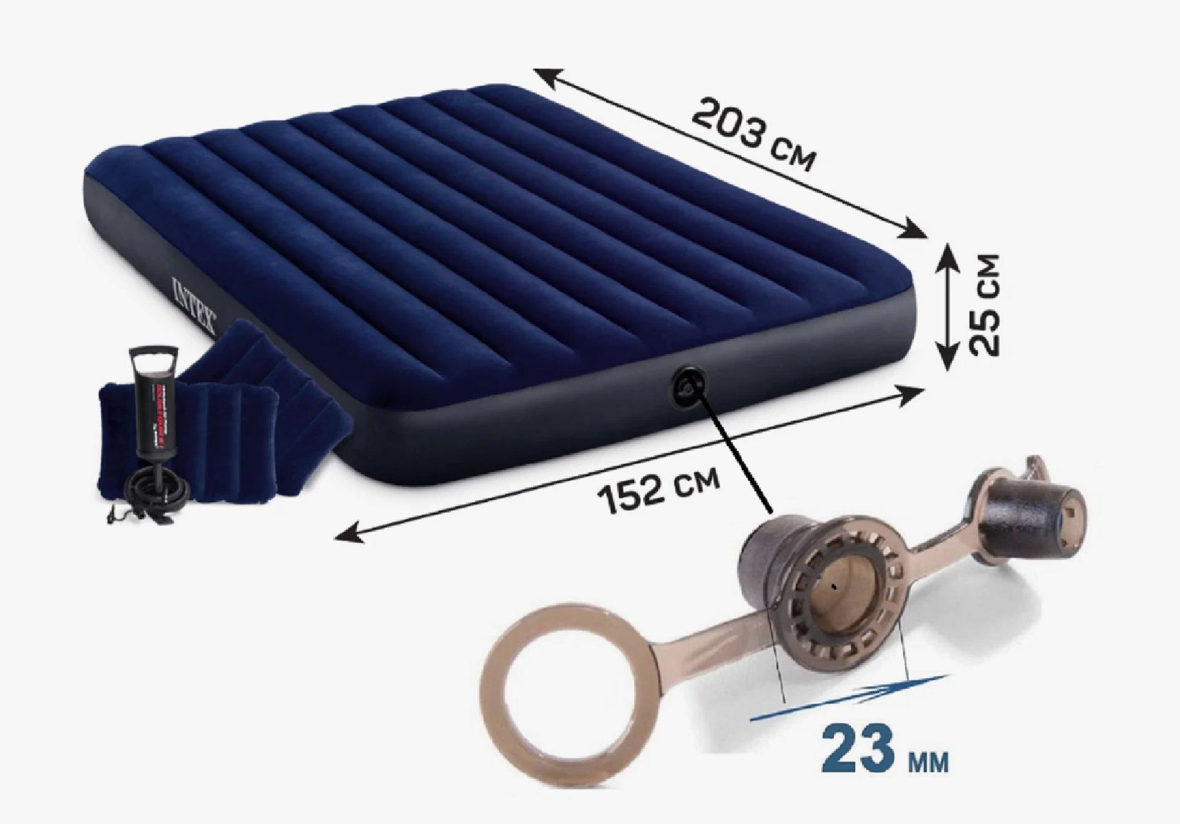 Матрас надувной 152х203х25 см с ручным насосом Intex