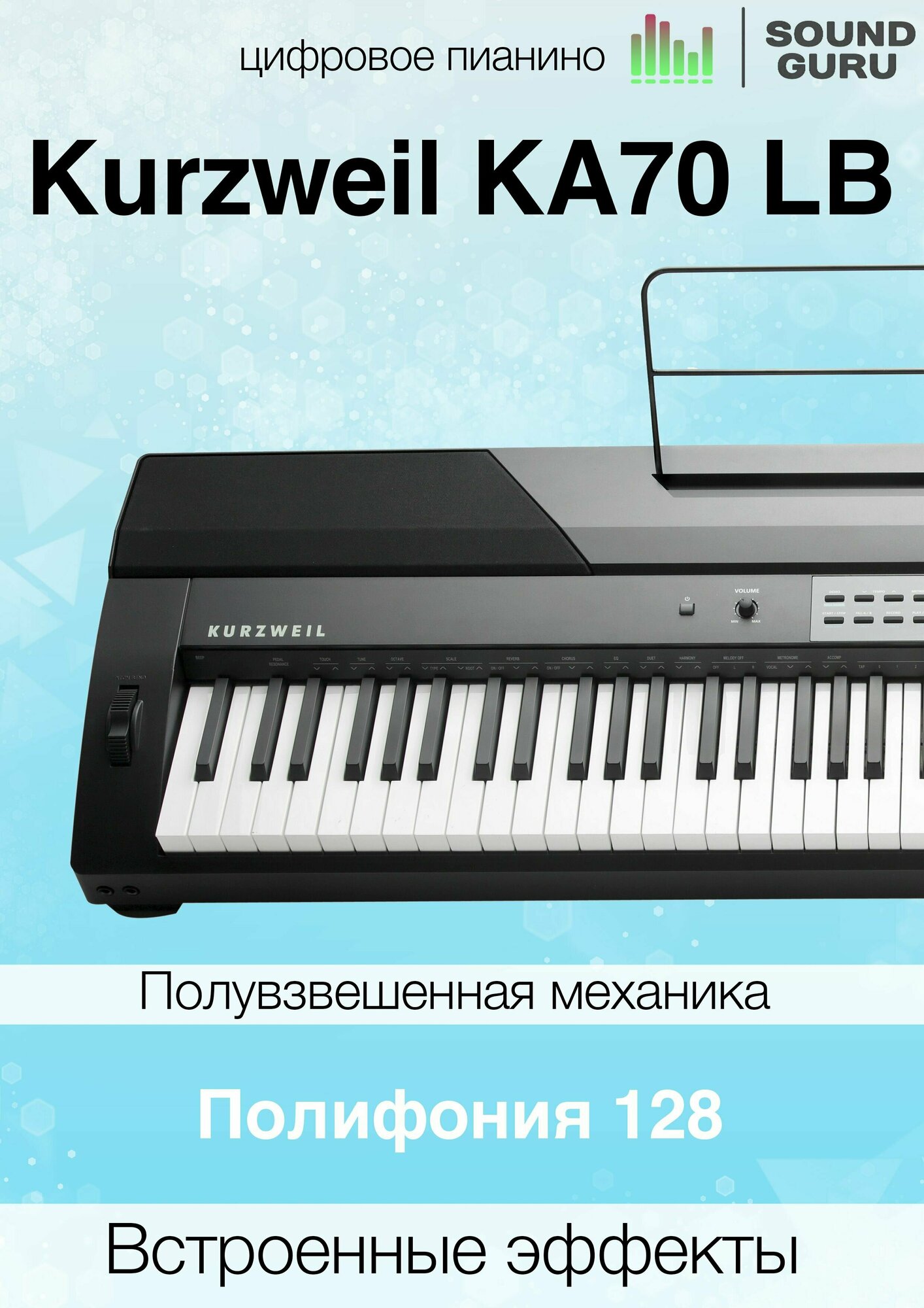 Kurzweil KA70 LB цифровое пианино, 88 полувзвешанных клавиш, полифония 128, цвет чёрный