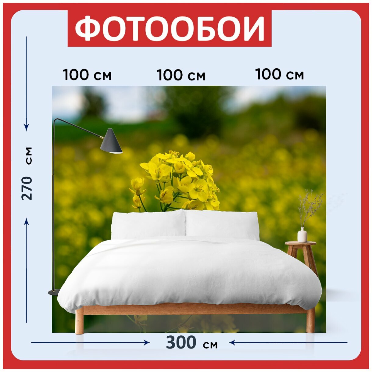 Фотообои ударопрочные моющиеся "Цветок, рапсовое, поле" 300x270 см. флизелиновые на стену интересное: