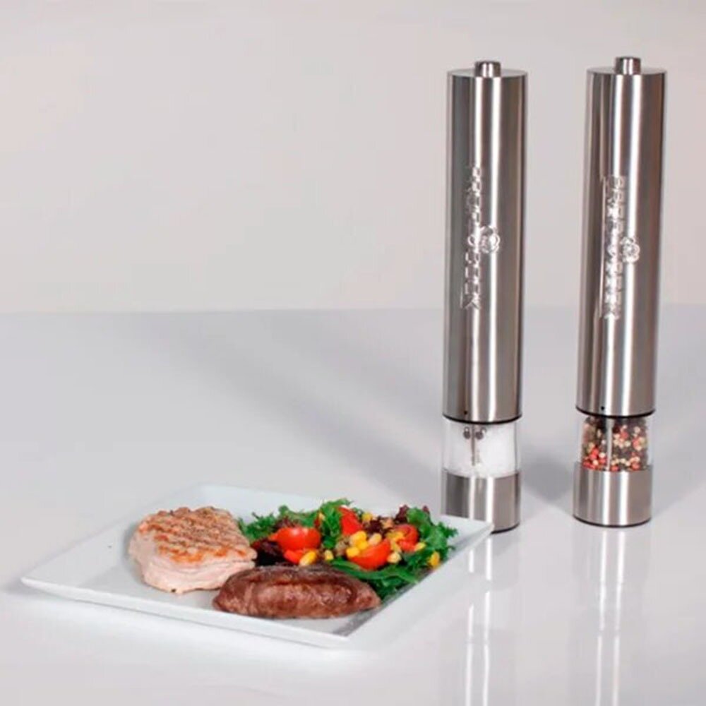 | Плюсы: | Удобно. Хорошо перемалывает как соль так и перец. Подсветка помогает контролировать сколько специй сыпется. |