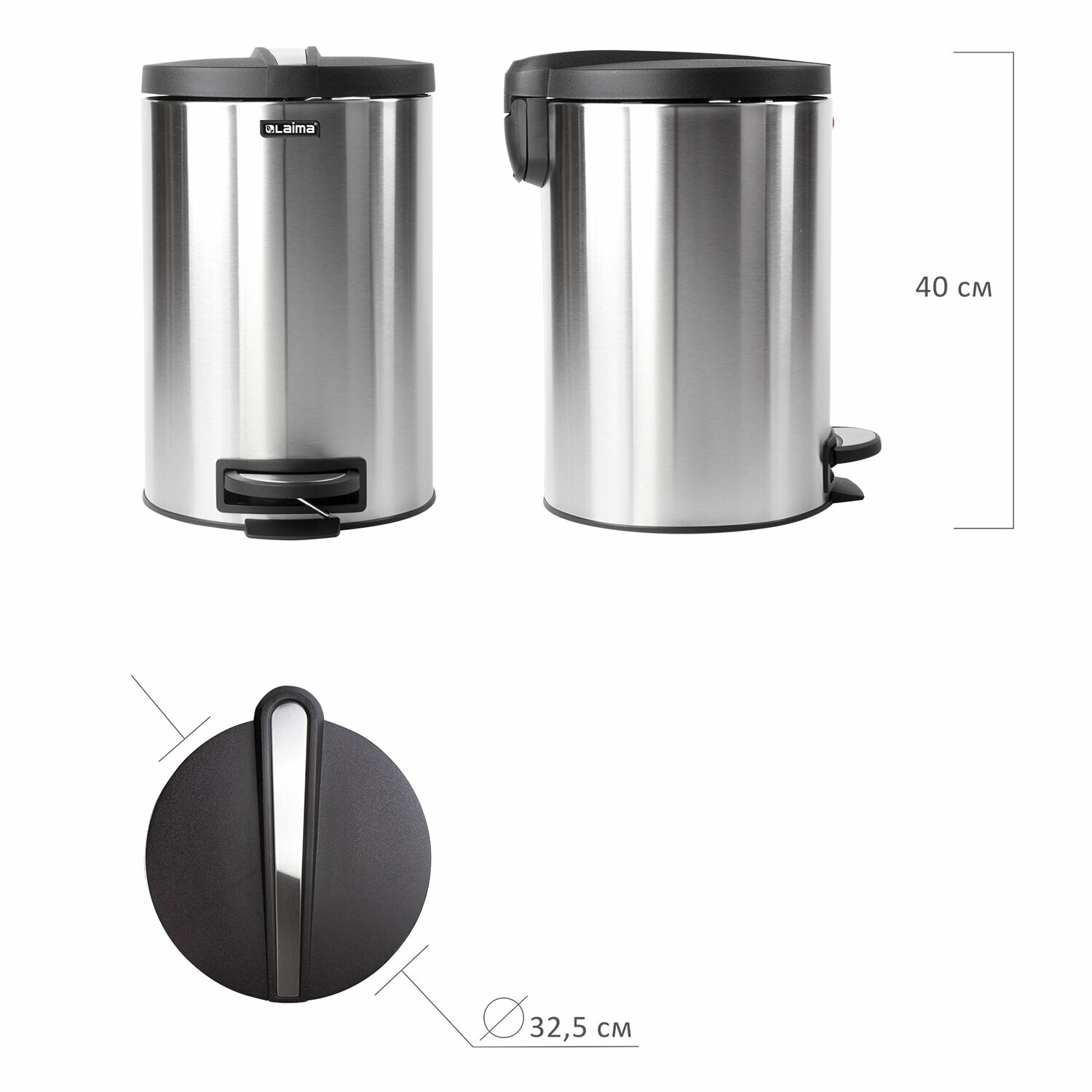 1 Ведро-контейнер для мусора (урна) с педалью LAIMA «Modern», 12 л, матовое, нержавеющая сталь, со съемным внутренним ведром, 232264