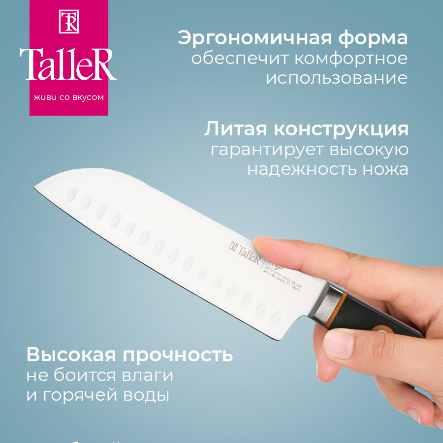 Нож кухонный сантоку TalleR, высококач.легир. сталь, 18см, (TR-22066), 1558116