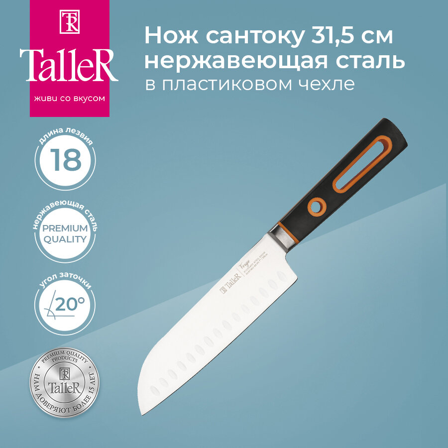 Ниже Вы можете прочитать отзывы на Нож кухонный сантоку TalleR TR-22066 Ведж, лезвие 18 см, нержавеющая сталь, ознакомится с подробными характеристиками, посмотреть интересные обзоры и фотографии на Нож кухонный сантоку TalleR TR-22066 Ведж, лезвие 18 см, нержавеющая сталь.