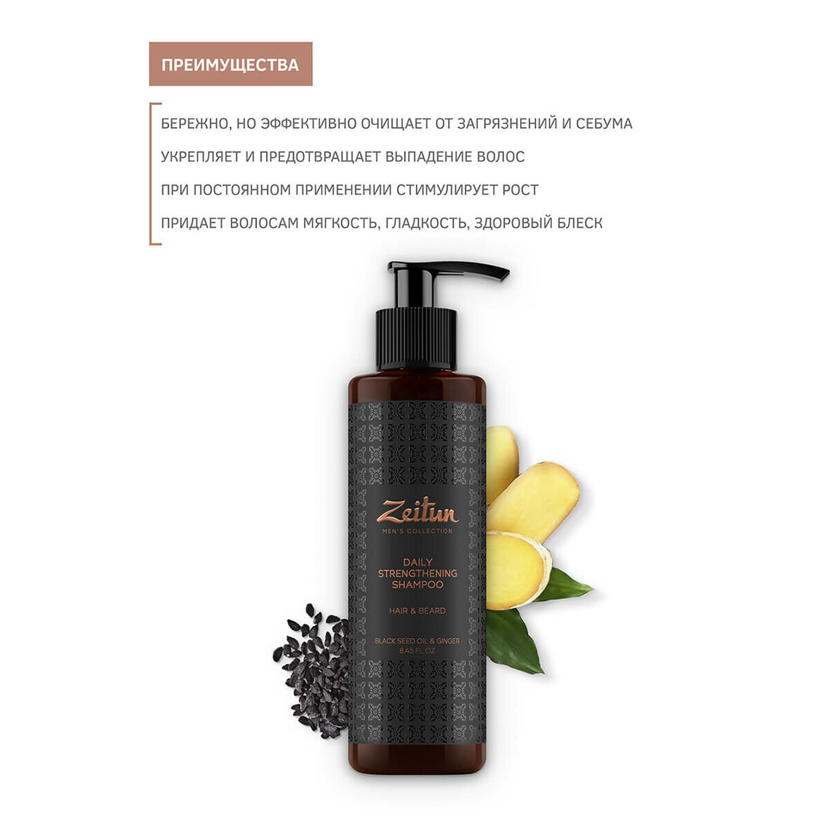 Шампунь ZEITUN для волос и бороды укрепляющий для мужчин С имбирем и черным тмином 250мл 4660048351159