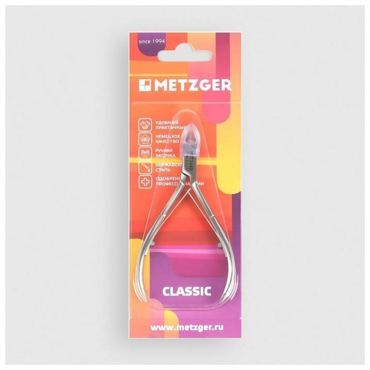 Metzger Кусачки маникюрные для кутикулы, двойная пружина, 10 см, длина лезвия - 3 мм, в блистере, цвет серебристый, PN-2/3-S-BJ-LJ