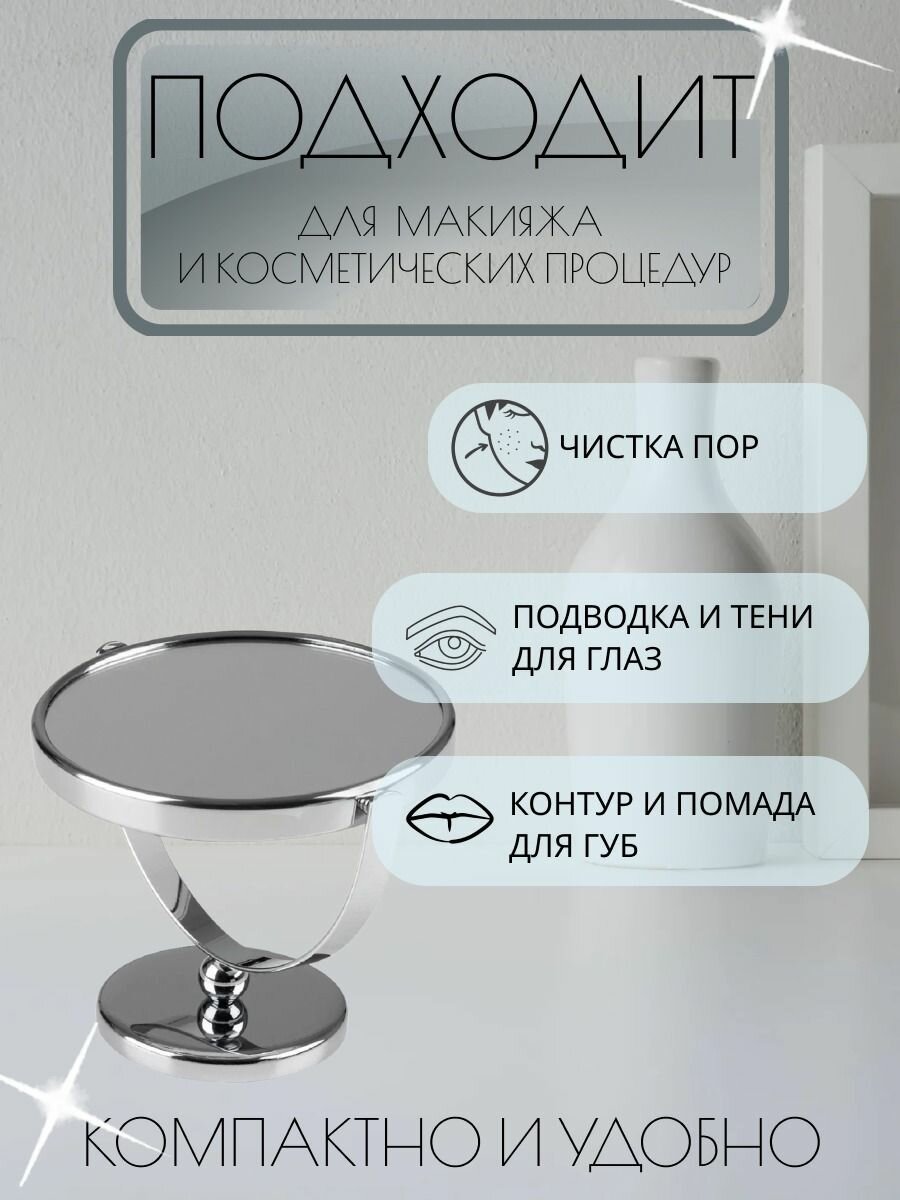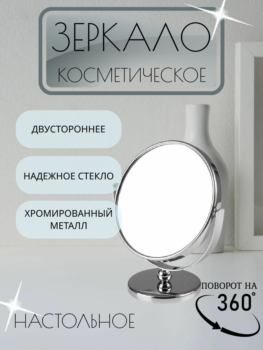 Купить Зеркало косметическое M-3135 двухстороннее (Х5) на ножке (диаметр:12,5см, хром.металл,стекло)