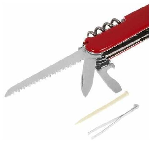 | Отзыв: | Пила отлично пилит как дерево,так и хлеб,штопор справляется с винными пробками,открывать пивные бутылки так же удобно,ножами удобно затачивать карандаши и стругать дерево если нужно.По сути эта модель заменяет сразу ряд брелков и вещей которые приходилось носить с собой или не было возможности носить,такие как ножницы или штопор. |