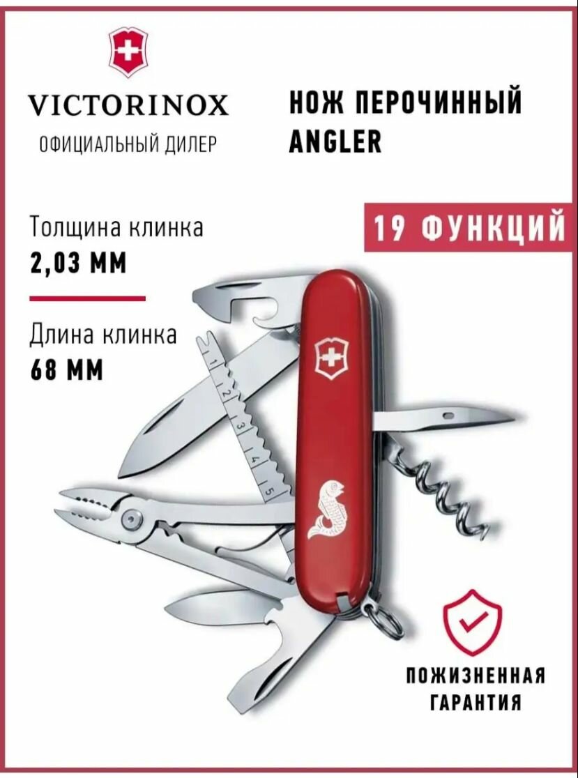 Купить Нож перочинный VICTORINOX Angler, 91 мм, 19 функций, красный