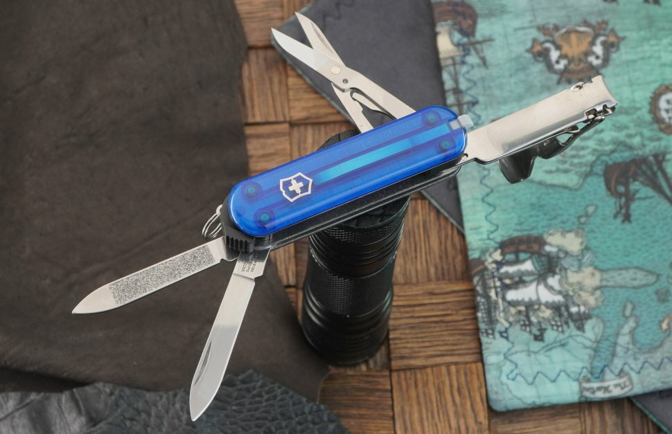 Нож многофункциональный VICTORINOX Nail Clip 580 синий полупрозрачный