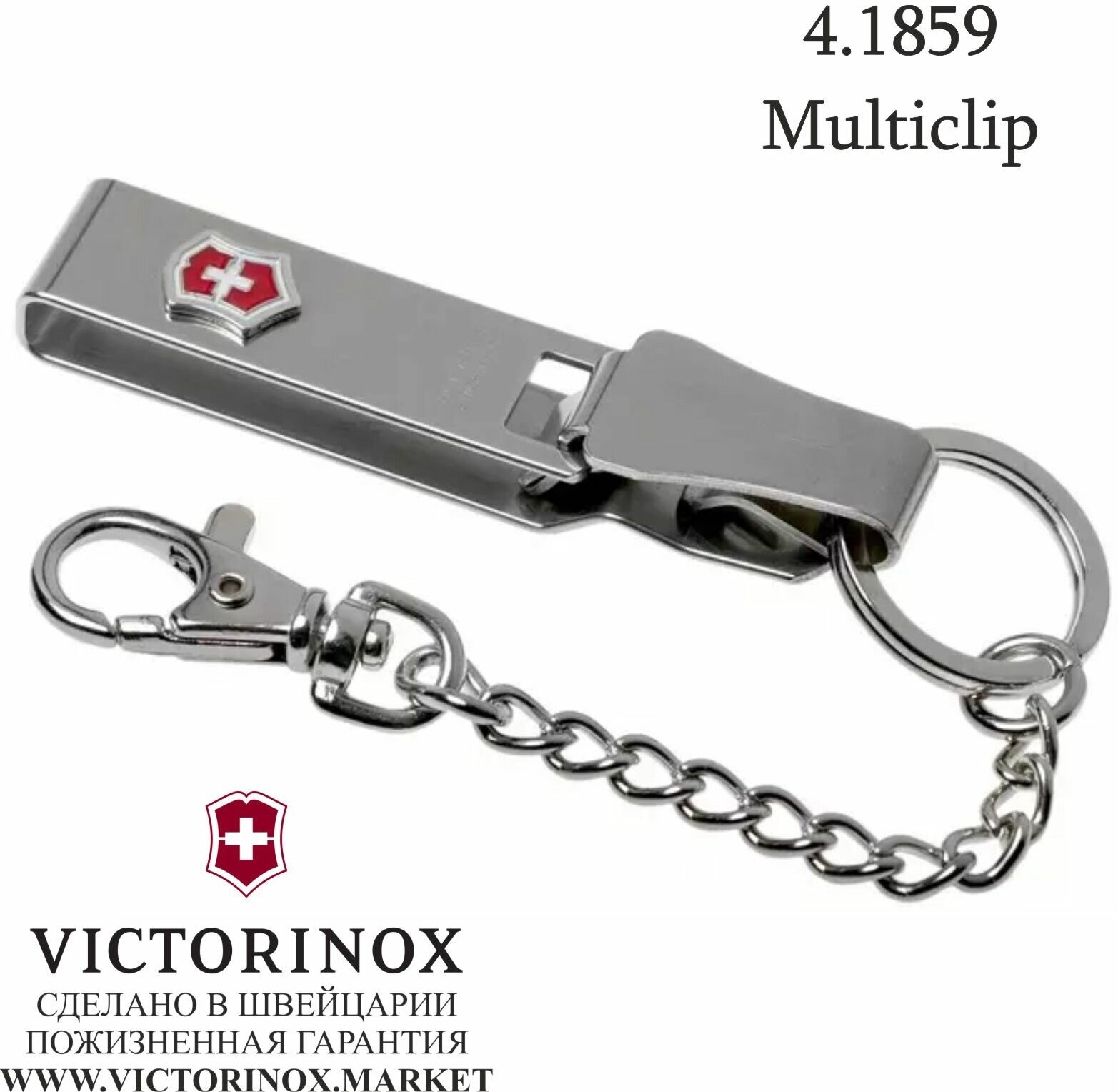 Подвеска на ремень VICTORINOX Multiclip 4.1859, с карабином, кольцом для ключей и цепочкой, металлическая