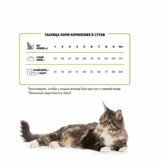 KARMY HAIR & SKIN ,корм для взрослых кошек от 1 года, поддерживающий здоровье кожи И шерсти (лосось) 10 к