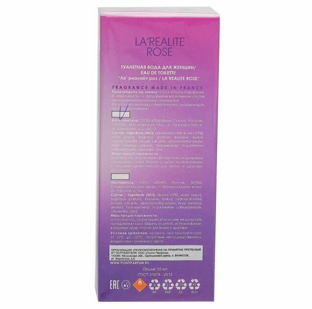 Духи Ponti Parfum GraceAlba La'REALITE ROSE edt50ml (версия LightBlue)
