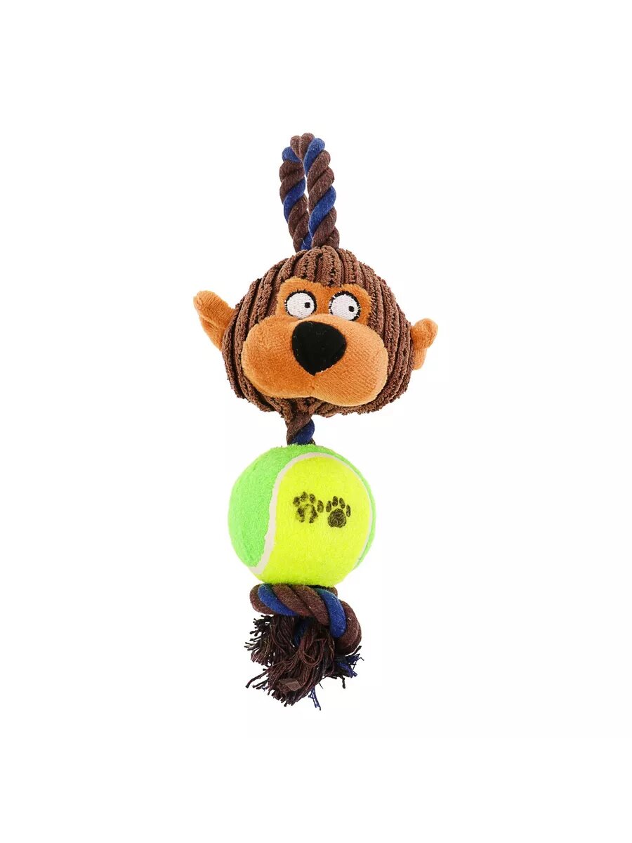Игрушка для собак 3-в-1 "Обезьяна": канатная, мягкая с пищалкой, войлочный мяч, 30 см 3595201