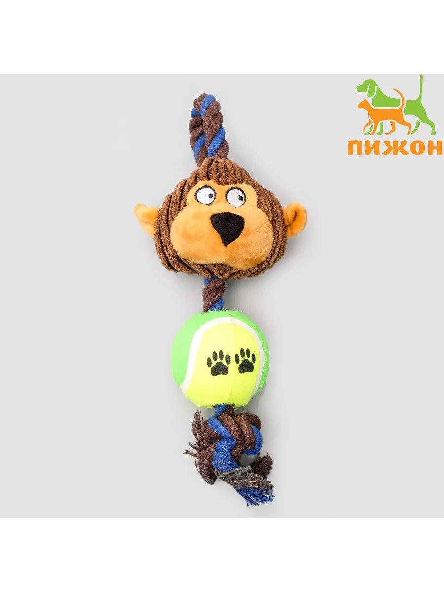 Купить Игрушка для собак Пижон 3-в-1, "Обезьяна", канатная, мягкая, с пищалкой, войлочный мяч, 30 см