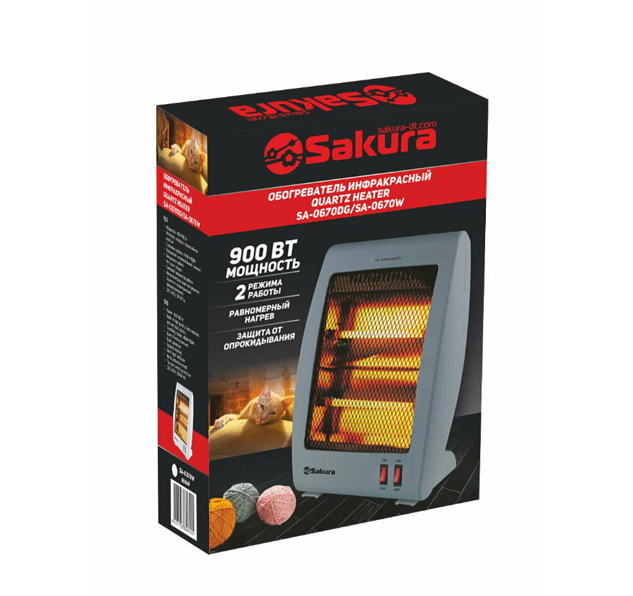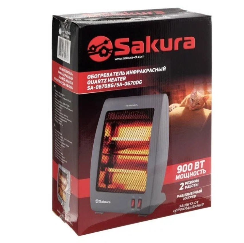 Обогреватель Sakura SA-0670DG, кварцевый инфракрасный, 900 Вт, бесшумная работа SAKURA 4800469 .