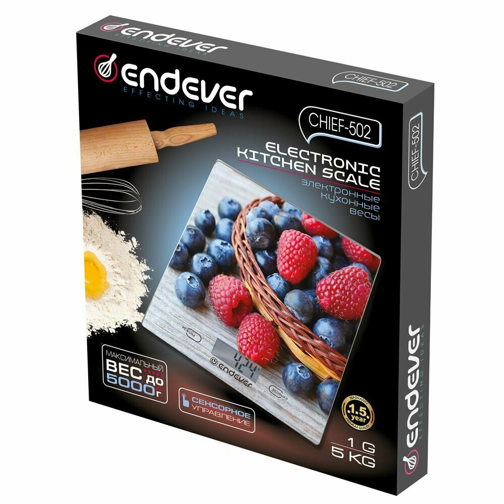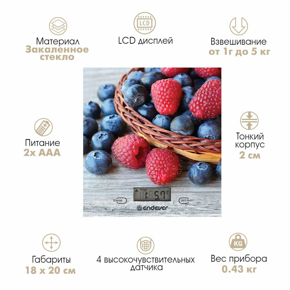 Кухонные весы ENDEVER Весы кухонные Endever Chief-502, электронные, до 5 кг, рисунок "Ягоды"