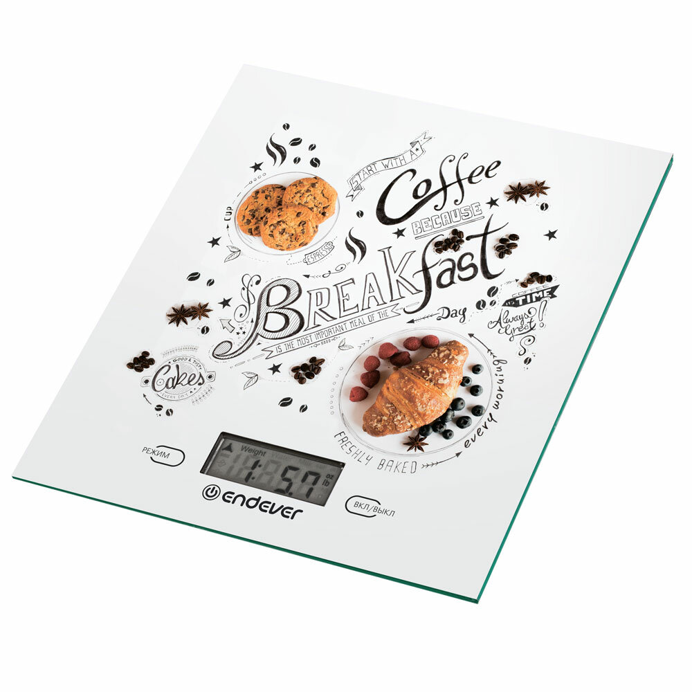 Весы кухонные электронные Endever Chief-503 / рисунок Завтрак / от 2г до 5кг