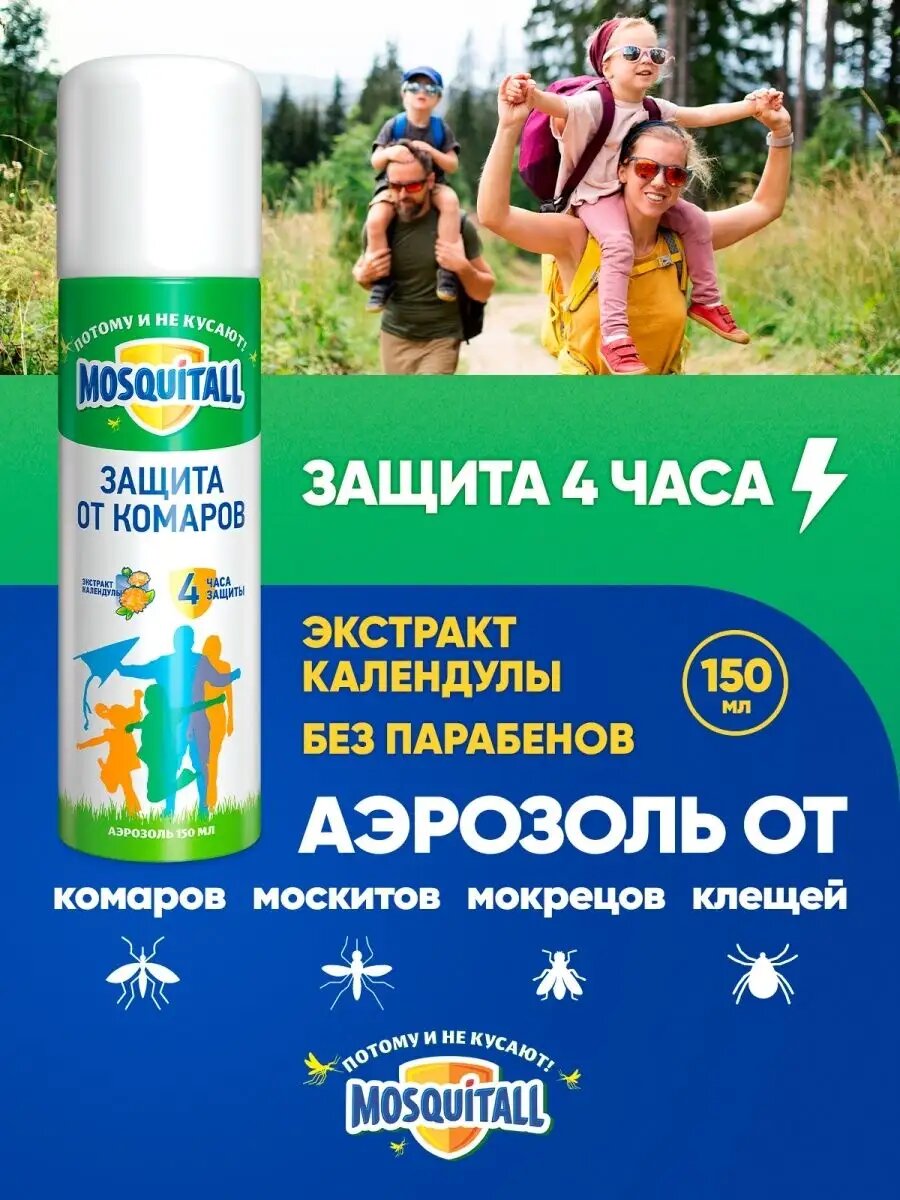 Mosquitall Защита для взрослых Аэрозоль от комаров 150 мл