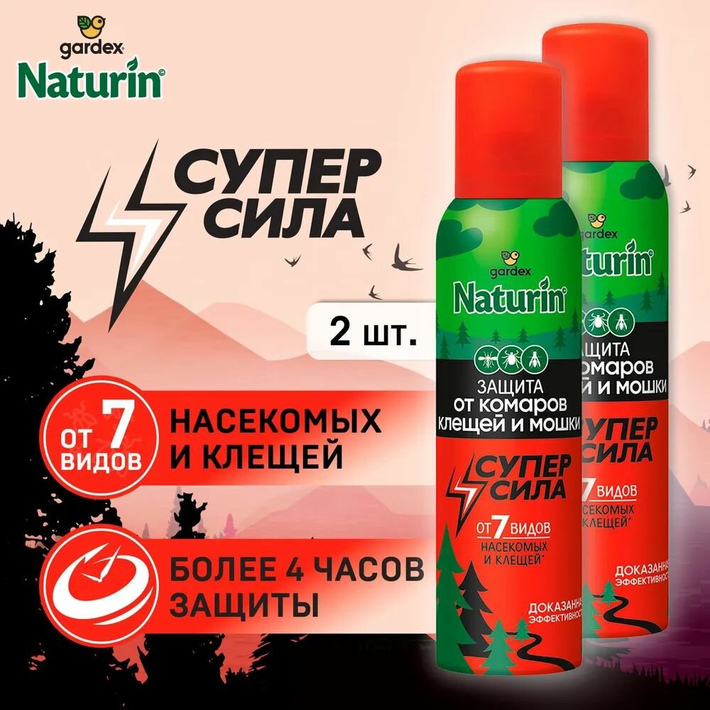 Gardex Naturin Супер Сила 3 в 1 (150 мл) Аэрозоль от комаров, клещей, мошки, слепней, мокрецов, блох от всех видов кровососущих насекомых репеллент спрей от насекомых средство от комаров и клещей
