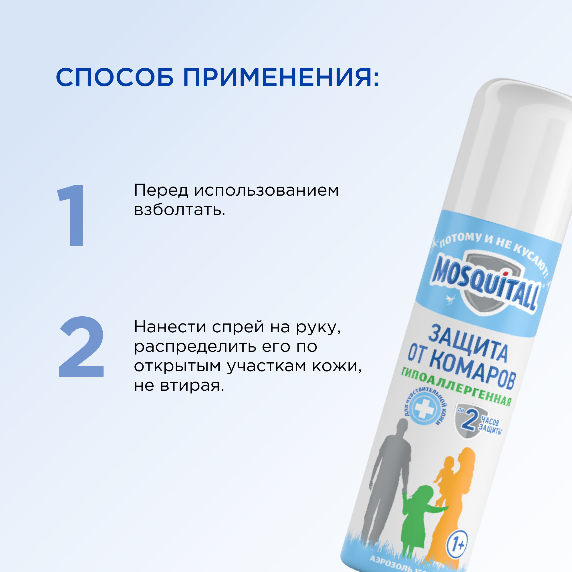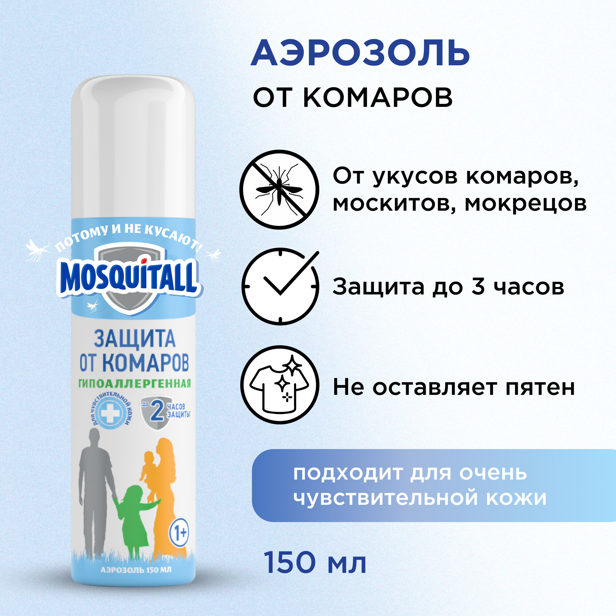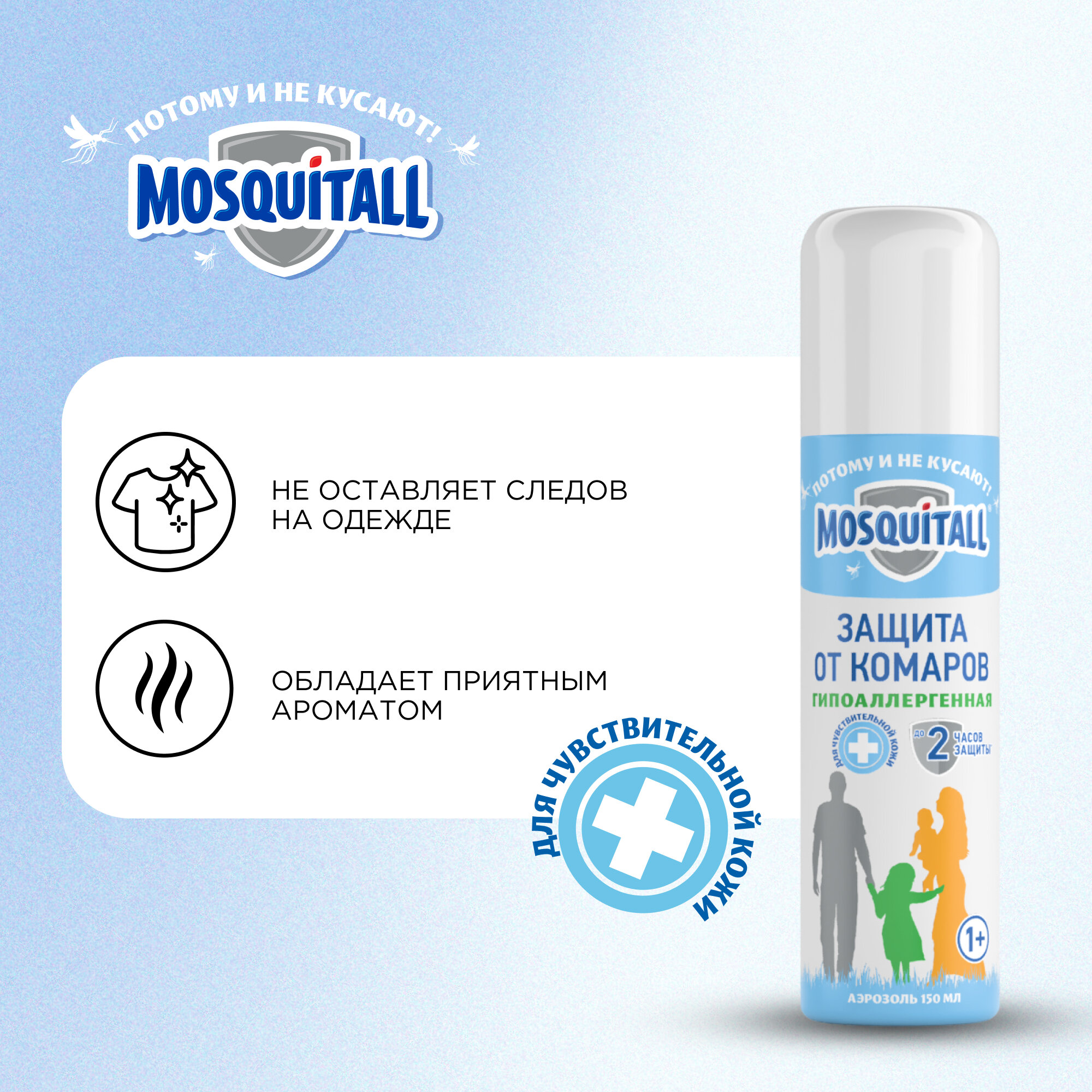 Mosquitall Гипоаллергенная защита Аэрозоль от комаров, мокрецов и москитов 2 часа защиты 150 мл